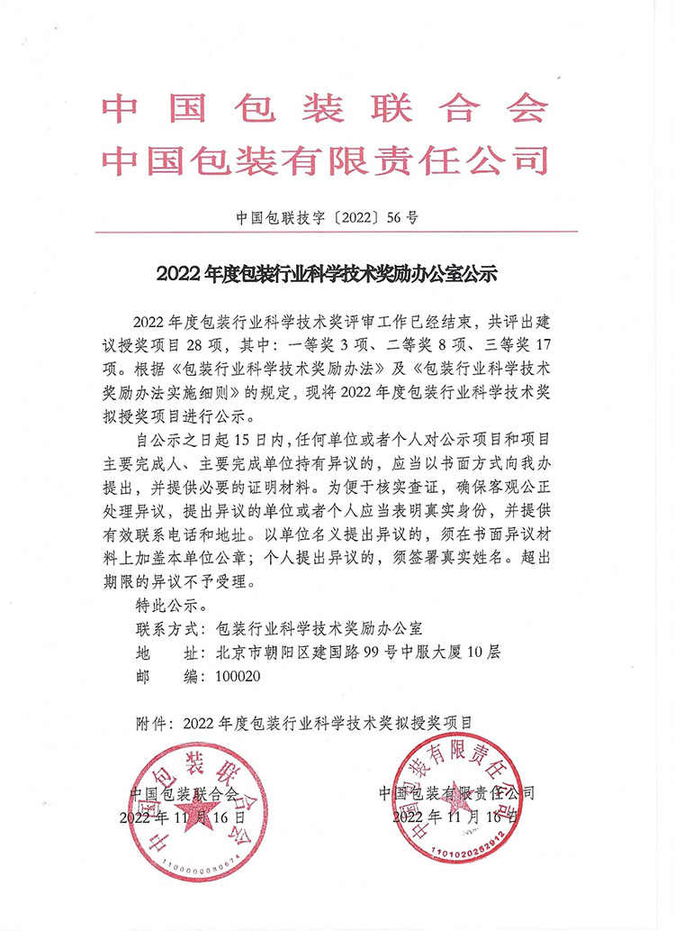 “包裝行業(yè)科學(xué)技術(shù)獎(jiǎng)”是經(jīng)國(guó)家科學(xué)技術(shù)部核準(zhǔn)登記,由中國(guó)包裝聯(lián)合會(huì)和中國(guó)包裝有限責(zé)任公司聯(lián)合設(shè)立的全國(guó)性行業(yè)獎(jiǎng),該獎(jiǎng)項(xiàng)是國(guó)內(nèi)包裝行業(yè)最具影響力的獎(jiǎng)項(xiàng)之一。近年來(lái),院校和科研機(jī)構(gòu)參與度逐年遞增,行業(yè)內(nèi)企業(yè)對(duì)科技獎(jiǎng)的整體重視程度逐年增強(qiáng),使得項(xiàng)目總體水平和整體質(zhì)量不斷提升,獲獎(jiǎng)難度也大幅增加。